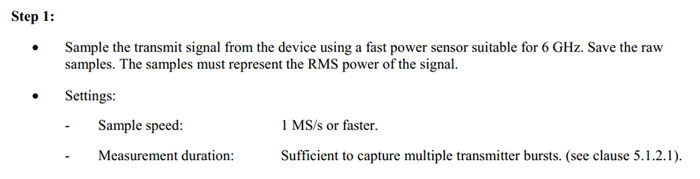 在雷達工作頻率低子帶區(5,250-5,350MHz),具有TPC功能時要求最大輸出功率小于23dBm,沒有TPC功能時要求最大輸出功率小于20dB。