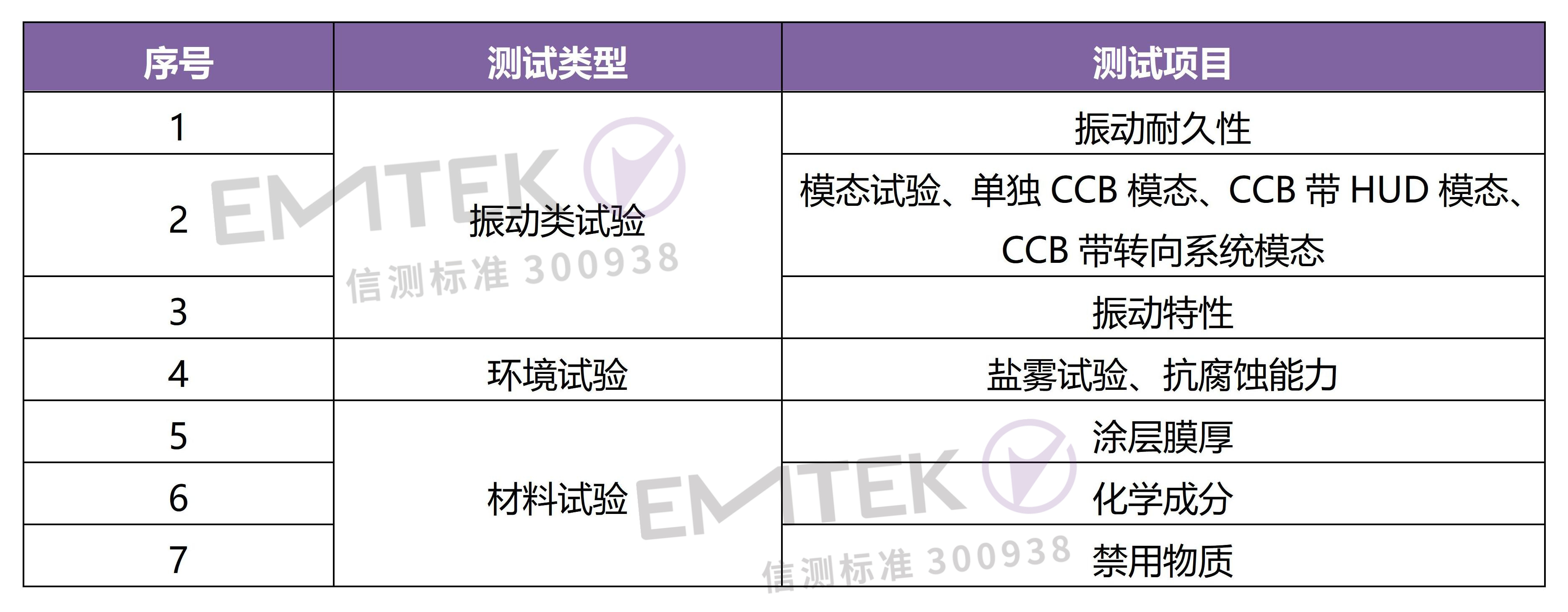 振動耐久性,噪音試驗,模態試驗等;