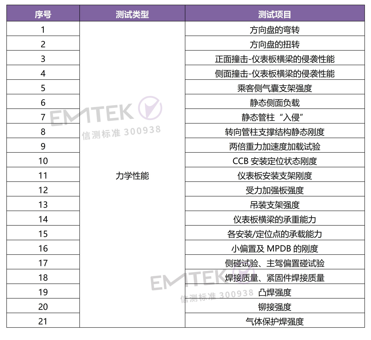 乘客側氣囊支架強度,靜態側面負載、各安裝/定位點的承載能力、側碰試驗等;
