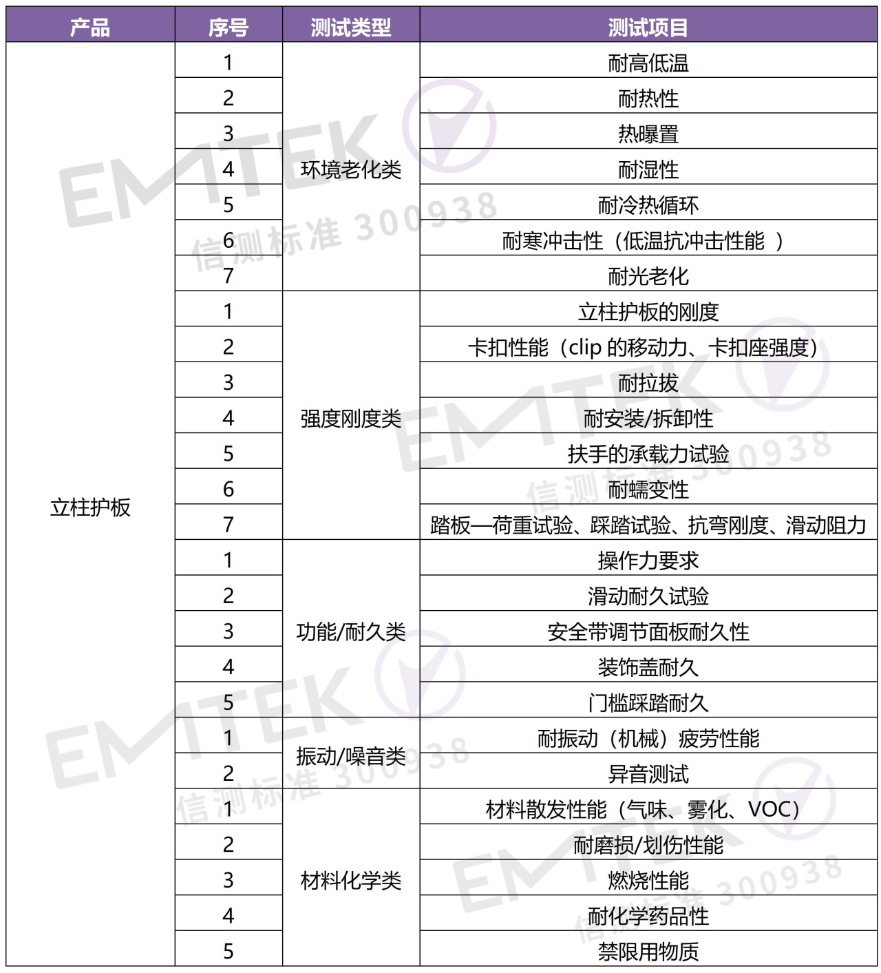 考核產品使用過程中承受的強度和剛性、操作功能特性及耐久、振動試驗等,比如立柱護板的剛度、卡扣性能、安裝/拆卸性能、安全帶調節面板操作性能、安全帶調節面板耐久性、裝飾蓋耐久、振動耐久、振動噪音等;