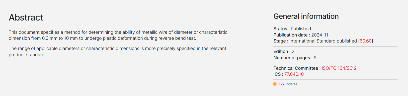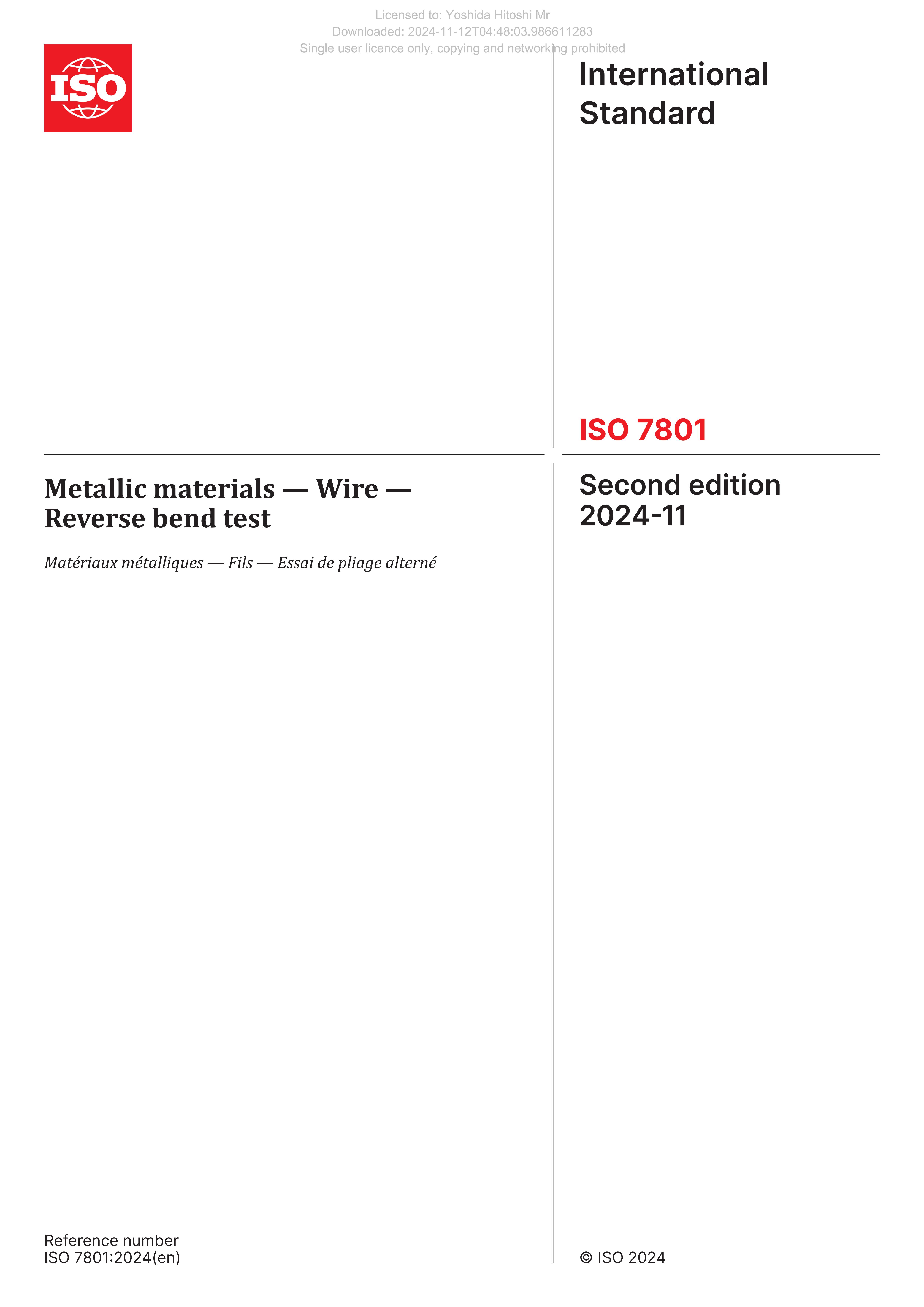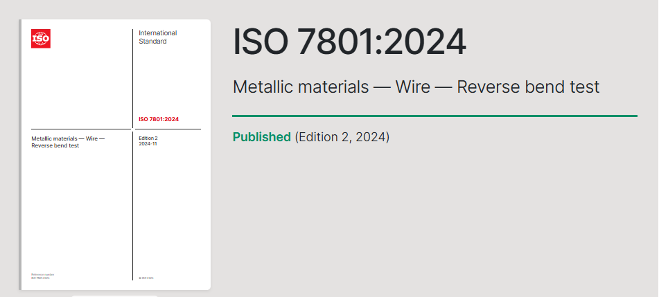 近日,由深圳信測標準技術服務股份有限公司牽頭起草的國際標準ISO 7801:2024 Metallic materials — Wire — Reverse bend test 《金屬材料 線材 反復彎曲試驗方法》正式批準發布。