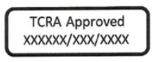 6. 新增TCRA 標簽要求,內容和樣式如下圖。其中XXXXXX/XXX/XXXX 為證書編號,標簽應使用 Arial 字體(字號最小為5)。允許使用電子標簽。