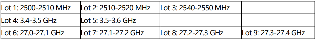 在該份咨詢文件中,TRCSL 計劃提供以下頻譜(為期十年):