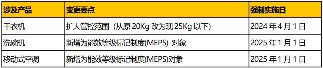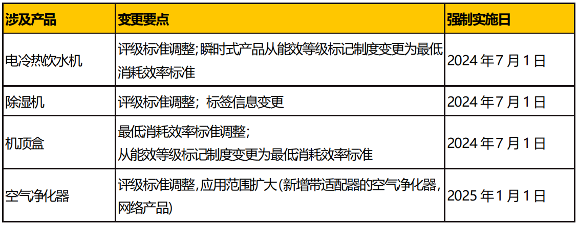 2023 年底,國(guó)家發(fā)展改革委、市場(chǎng)監(jiān)管總局組織制修訂了《中華人民共和國(guó)實(shí)行能源效率標(biāo)識(shí)的產(chǎn)品目錄(第十六批)》及相關(guān)實(shí)施規(guī)則,具體如下: