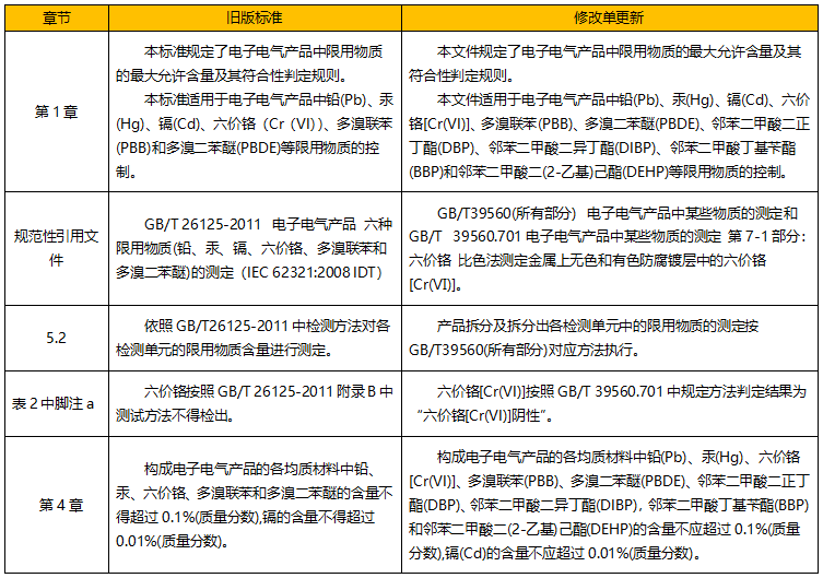 將原有的測試方法標準GB/T 26125-2011更新為GB/T 39560(所有部分)電子電氣產品中某些物質的測定。