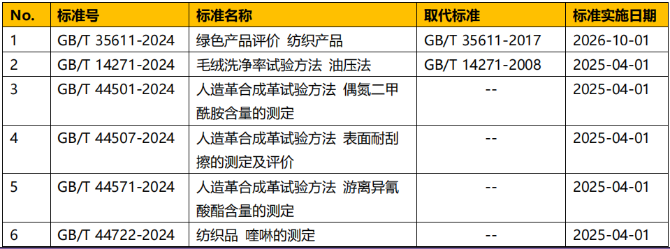 《綠色產(chǎn)品評價 紡織產(chǎn)品》、《紡織品 喹啉的測定》等多項國家標(biāo)準(zhǔn)發(fā)布