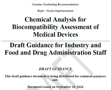 2024 年 9 月 20 日,美國食品藥品監(jiān)督管理局(U.S. FDA)發(fā)布了一項關(guān)于醫(yī)療器械生物相容性評估的化學(xué)表征指南草案(Chemical Analysis for Biocompatibility Assessment of Medical Devices:Draft Guidance for Industry and Food and Drug Administration Staff)