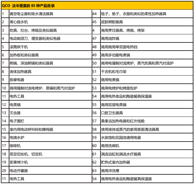 1. 該法令新增了 85 類電器產(chǎn)品,具體清單請看附錄表。