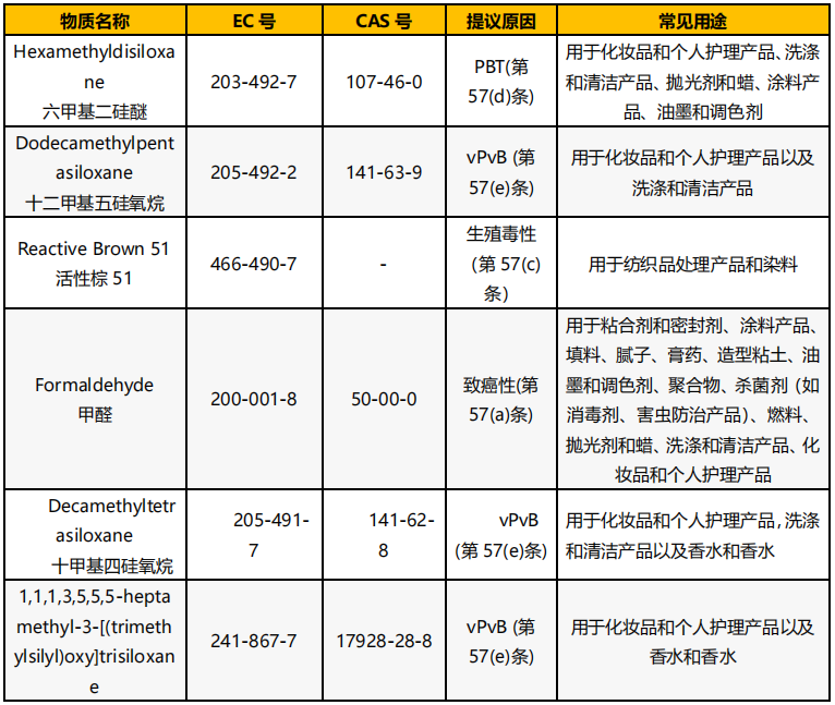 截至目前,共有 6 項 SVHC 意向物質,均處于物質卷宗準備階段: