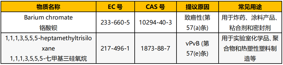 ECHA 在對 SVHC 清單更新的同時,也更新了 SVHC 意向清單。