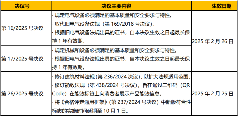 阿根廷工商秘書處于 2025 年 2 月 25 日發布多項安全和能效相關決議,見表 1: