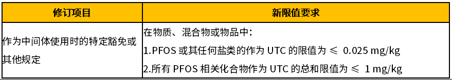 · 使全氟辛烷磺酸(PFOS)及其衍生物的物質(zhì)識別術(shù)語與全氟辛酸(PFOA)保持一致,調(diào)整為“全氟辛烷磺酸(PFOS)、其鹽類和PFOS相關(guān)化合物“;