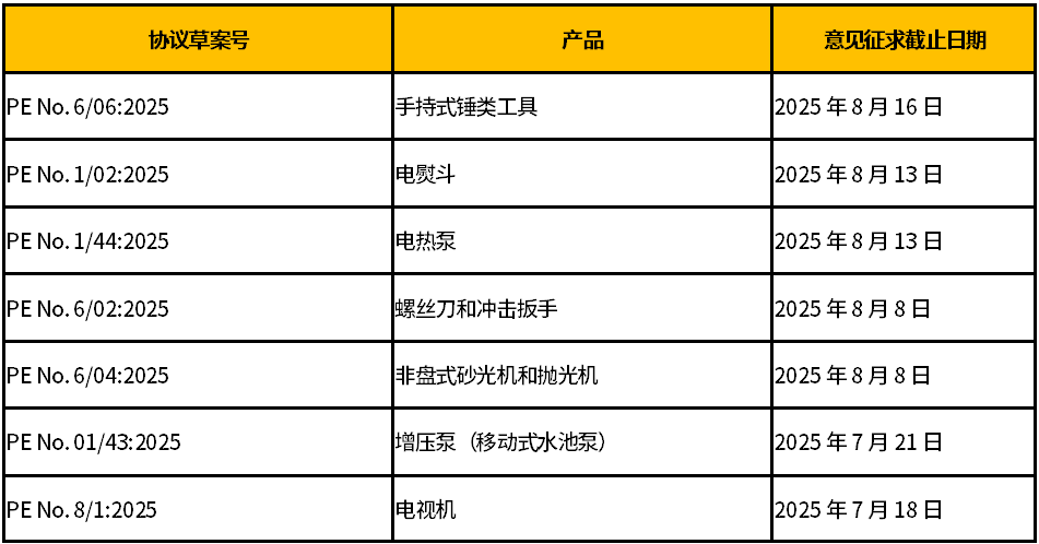 智利電力和燃料監(jiān)管局(SEC)于2025年2月就多項(xiàng)分析和/或檢測協(xié)議草案公開征求意見,見下表 。