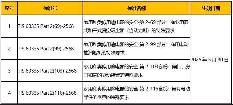 泰國工業(yè)標(biāo)準(zhǔn)協(xié)會(TISI)于2025年2月7日更新TISI標(biāo)準(zhǔn)清單,新增多項(xiàng)自愿性標(biāo)準(zhǔn),見表。