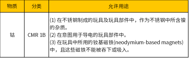 2025年7月9日,歐盟委員會提議修訂玩具安全指令2009/48/EC的附件II附錄A,添加了有關鈷(cobalt)的項目: