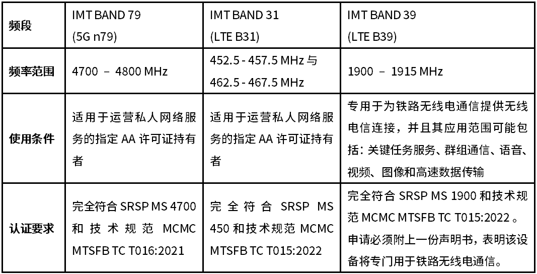 本次修訂的要點是CRC將Band 7 (2500-2570 MHz/ 2620-2690 MHz)和Band 38 (2570-2620 MHz)劃分用于5G NR技術,并規定了適用的技術標準。同時,通函要求相關設備需符合3GPP及SAR要求。