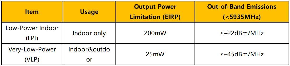 1. 根據該決議,現5945–6425 MHz頻段已經正式開放,附帶以下使用條件: