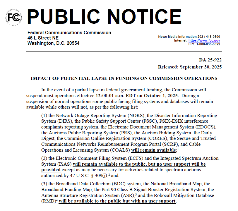 例外:頻譜拍賣相關(guān)截止日、執(zhí)法調(diào)查回應(yīng)期、BDC(寬帶數(shù)據(jù))挑戰(zhàn)/審核回應(yīng)期不延期——請注意別錯過!